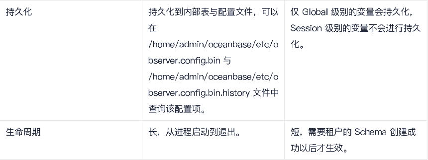 OceanBase 的系统变量都是租户级的,也就是只对当前的租户生效。所以系统变量又可以被称作租户系统变量。
