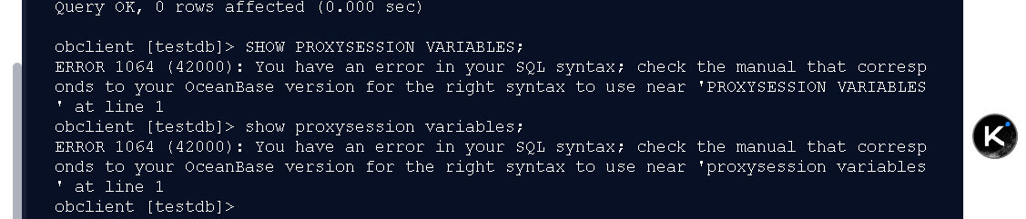 SHOW PROXYSESSION VARIABLES;提示如下报错,暂未找到原因: