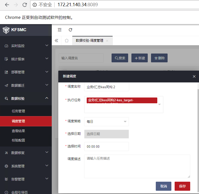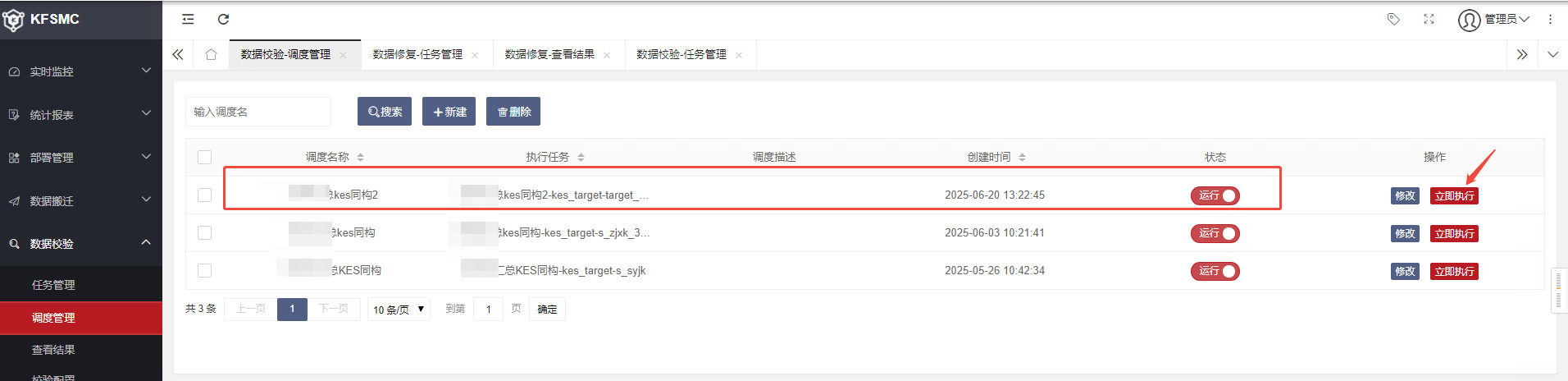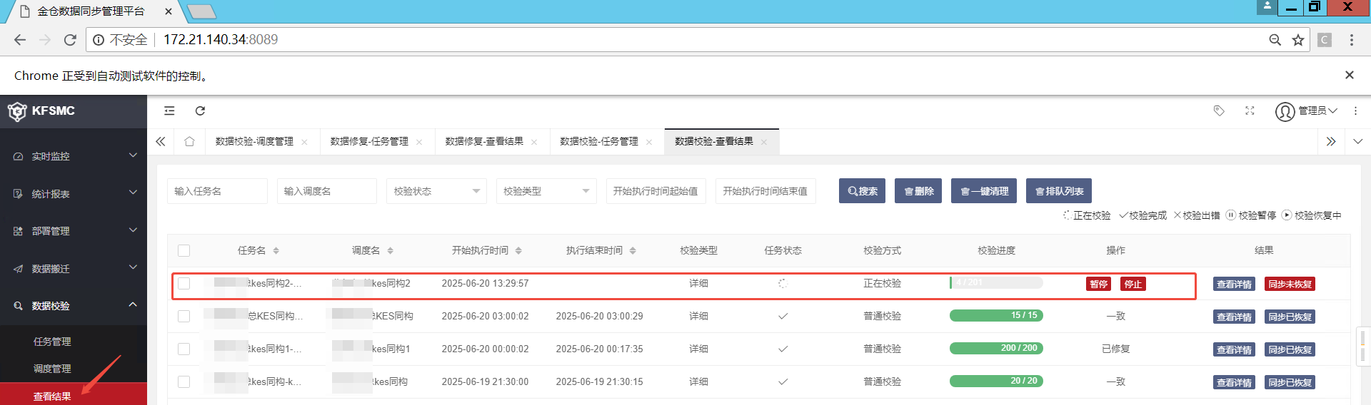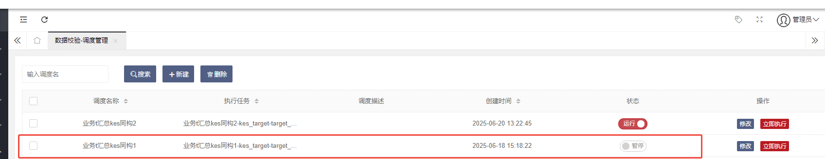 注意:每次手动执行数据校验调度时,目标端节点的同步服务会离线,等校验结束数据一致才会上线目标端节点的同步服务。