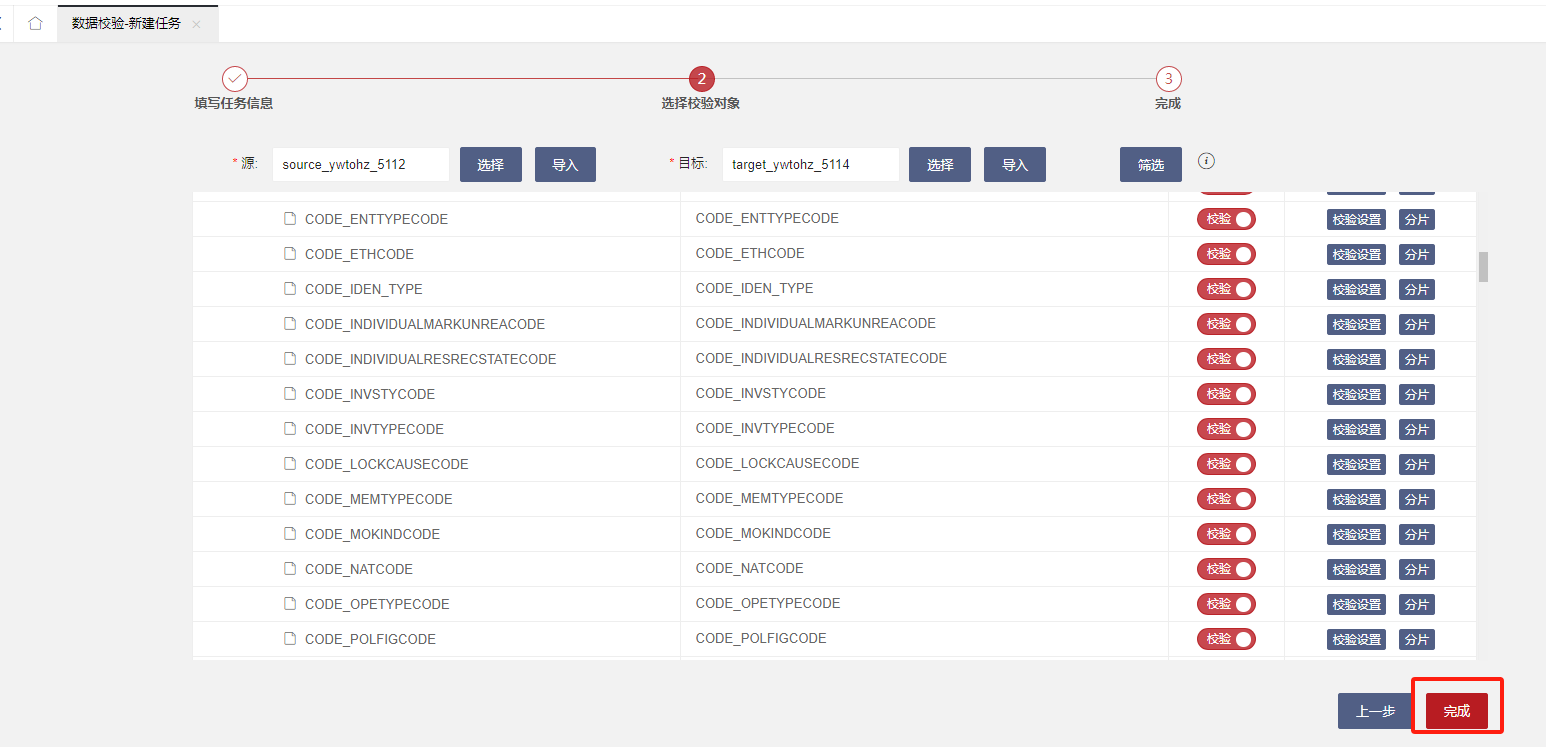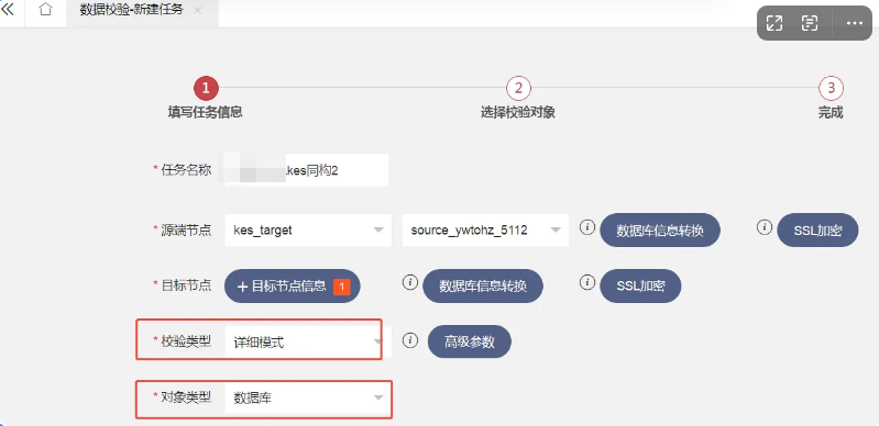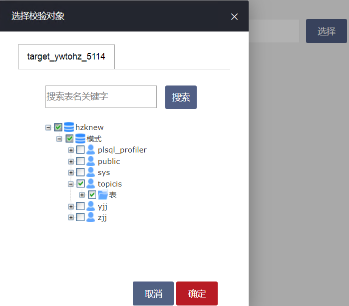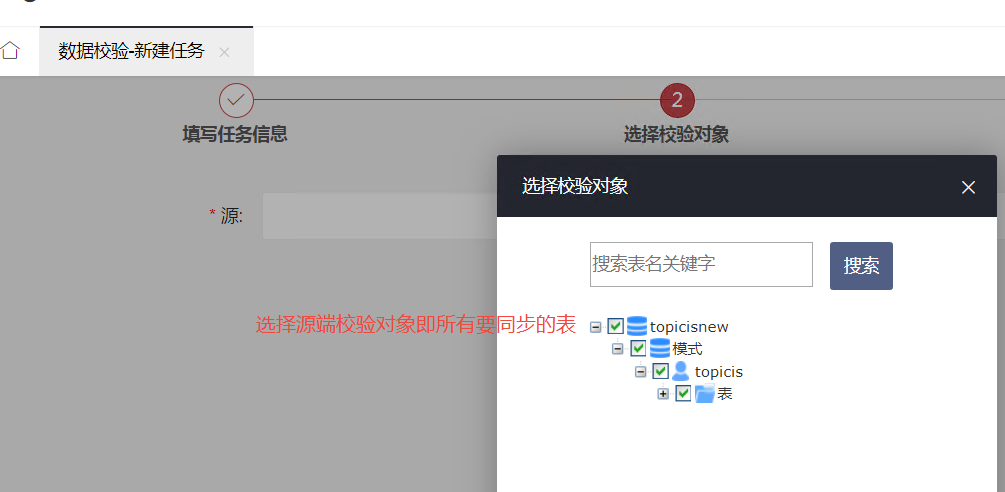选择源端要校验的对象,一定要选对数据库和模式名。