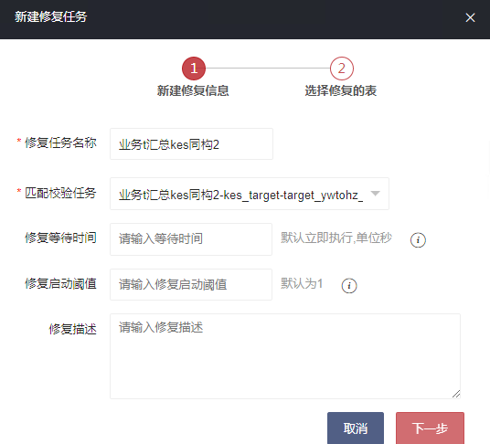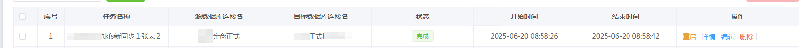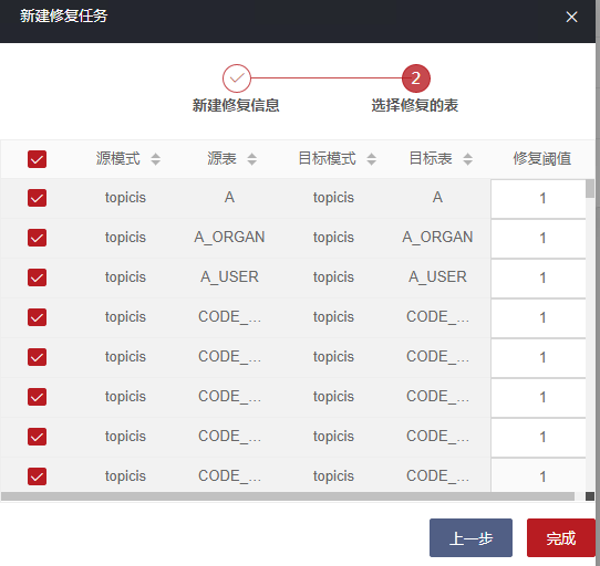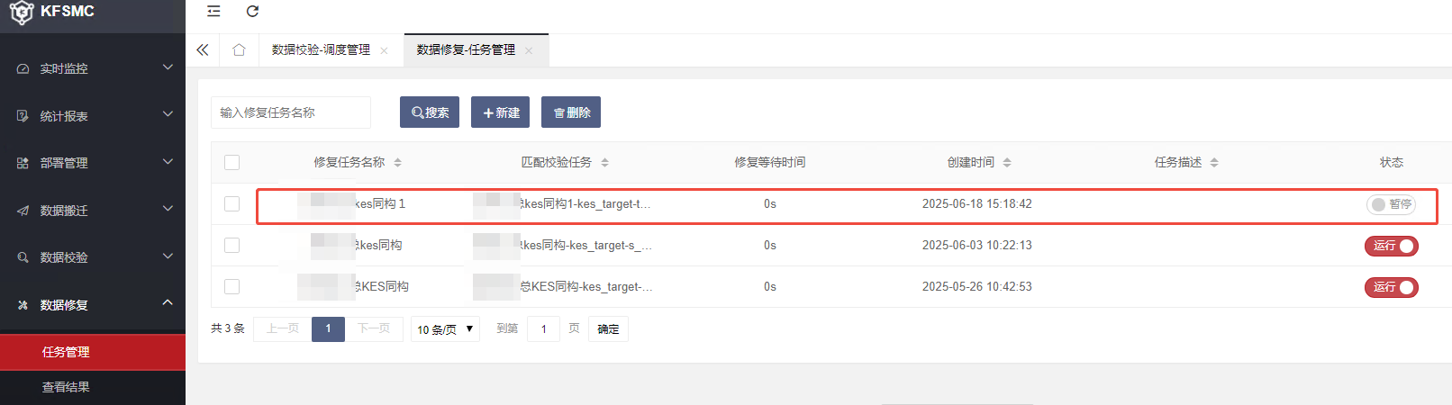 如果目标端和源端有数据不一致,会自动进行修复,修复完成后操作列会显示已修复。