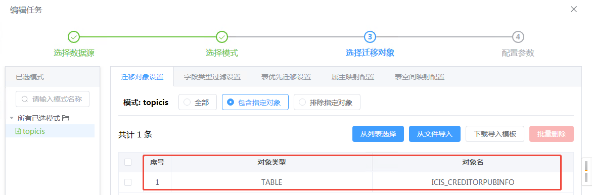 打开KDTS工具,将源端topicis用户下的topicis模式下的 ICIS_CREDITORPUBINFO表存量数据迁移至目标端topicis用户下的topicis模式下。