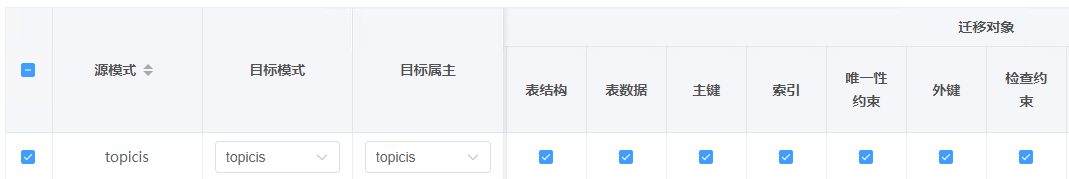 迁移内容仅包含和表相关的类型,如:表结构、表数据、主键、索引、唯一性约束、外键、检查约束、注释。