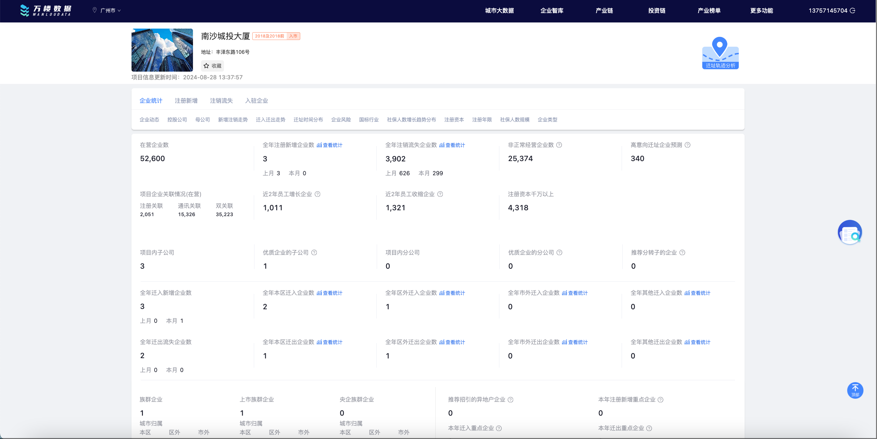 万楼数据提供实时更新的企业动态信息,覆盖城市、区县、街道到具体楼宇项目多个维度。政府工作人员可通过企业详情页快速查看企业的注册变化、迁入迁出情况、招聘信息、投融资动态、社保人数变化等关键数据,全面掌握辖区内企业生命力和发展趋势,为安商稳商提供真实依据。