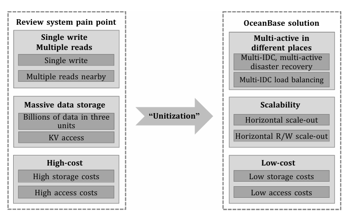 (图 3 评论服务分析以及 OceanBase 解决方案)