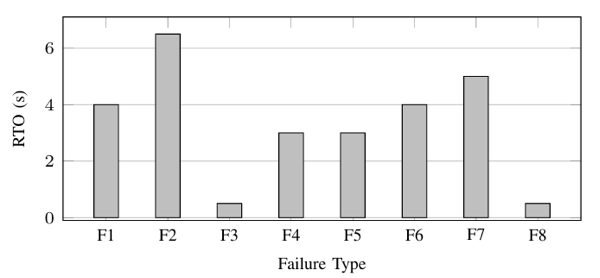 实验通过测量恢复时间目标(RTO)来量化系统恢复性能,RTO 定义为从请求遇到“无响应”错误到被其他单元成功处理的时间。实验结果表明,OceanBase 单元化部署的 RTO 始终低于 6 秒,其中 F2 场景因偶尔出现的节点重置消息接收失败导致 RTO 稍长,但通过参数调优可有效缓解。这表明系统能够快速从故障中恢复并恢复正常操作,最大限度减少对请求处理的干扰。
