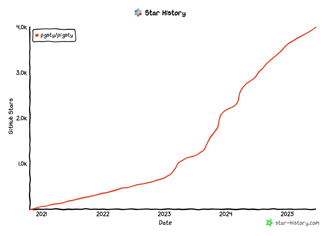 喜报:Pigsty 项目刚刚喜提 4000 Star,对于一个数据库项目来说,算是难得的里程碑了。与此同时,本号关注数量突破 4万4千,感谢各位读者朋友的抬爱。