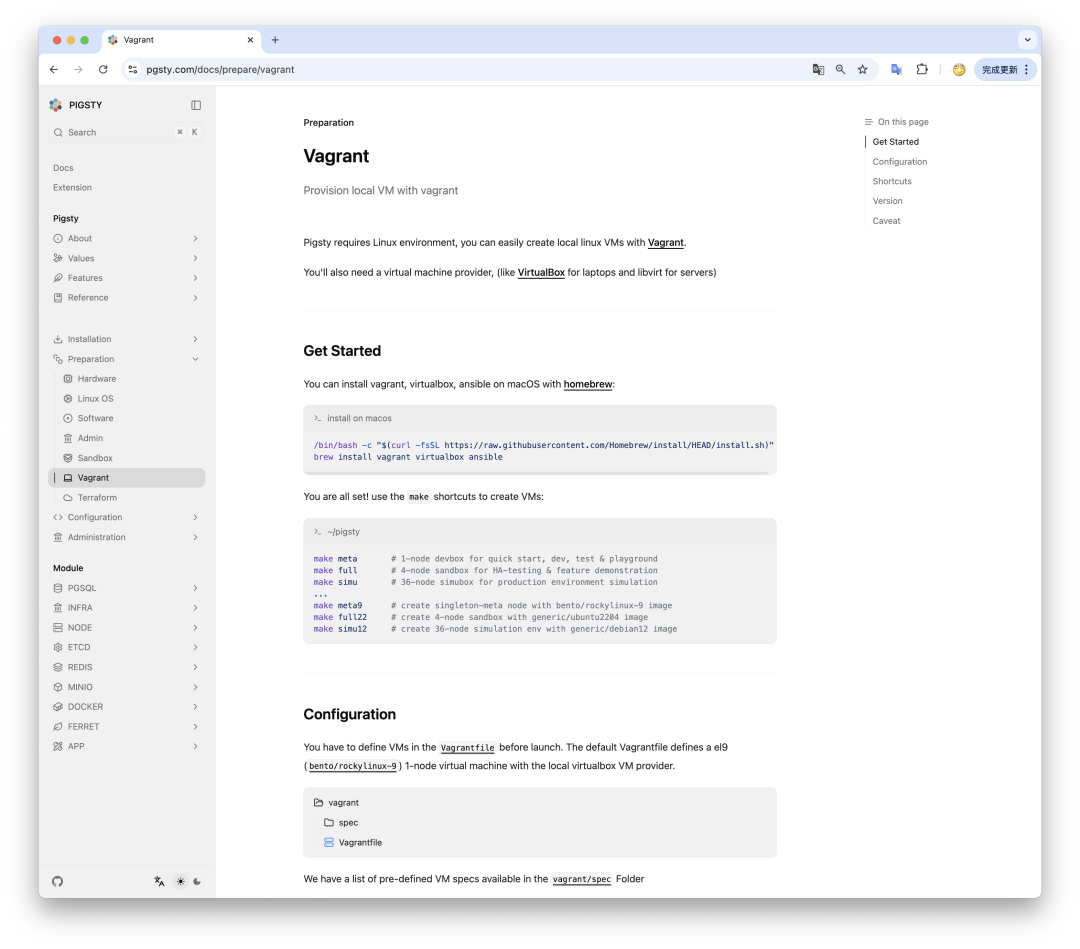 Pigsty 提供了 vagrant terraform 沙箱模板,允许你在本地/云端轻松拉起所需的虚拟机资源。不过 vagrant virtualbox 一直以来 Apple 的 ARM 架构支持不足,有各种问题。不过在最近我重新测试了一下,vagrant + virtualbox 的组合在 AppleSilicon 上丝滑的运行起来了,真的是值得高兴的一件事。