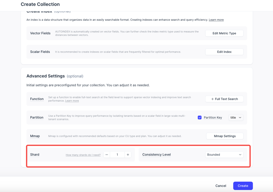 Shard 和 Consistency level 是 Collection 两个重要能力,Shard 是Collection 的水平分区,提供独立的写入通道,能显著提升写入吞吐量。一致性级别决定了在搜索和查询操作中跨副本最新数据的可见性,默认 Bounded