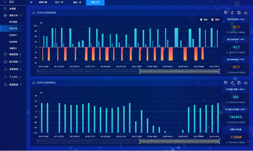 成本效益分析:EMS系统可以实时记录各储能柜充放电量、功率曲线、用能交易数据等关键数据信息,结合分时电价、用户负荷预测,自动生成收益报表,得出套利收益和设备损耗等预测信息。