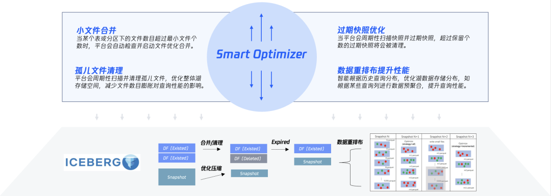 首先,DLC通过智能识别小文件对任务的影响,并自动进行必要的文件合并,显著提升了任务处理速度。同时,DLC原生表内置的小文件优化策略,能够自动调起Spark引擎完成小文件合并、数据生命周期管理、Iceberg过期快照清理等操作,大大降低了运维人员的日常工作量,让他们有更多时间关注业务创新。