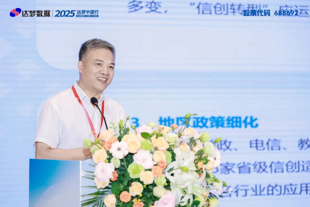 大会伊始,浙江省信息技术应用创新联盟副理事长、浙江省电子信息产品检验研究院副院长尹肖栋登台致辞。他强调,信创产业是浙江数字经济发展的“新引擎”,技术创新对提升产业数字化竞争力、保障数字安全意义重大,期待以达梦数据为代表的信创企业协同构建适配浙江产业特色的信创生态。