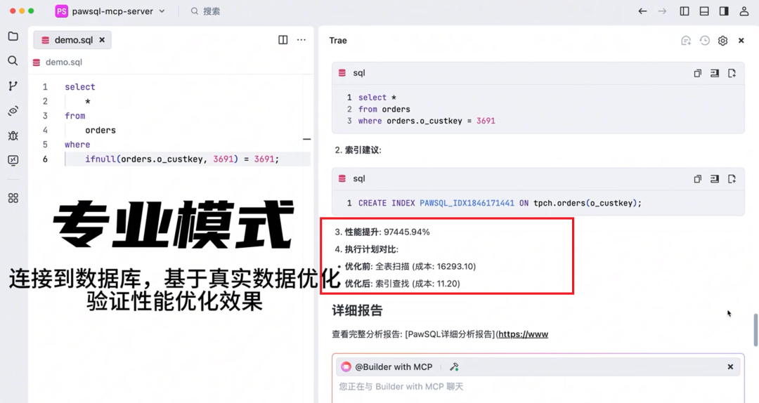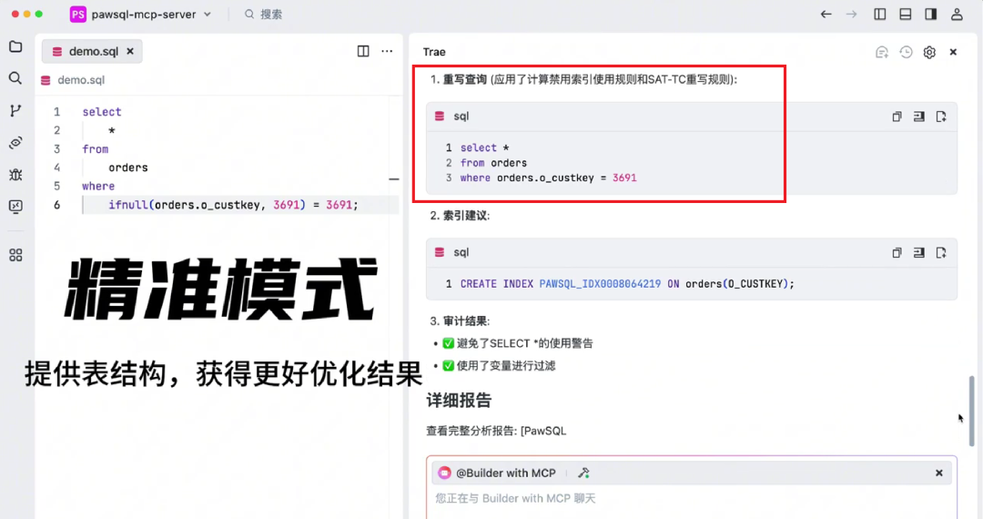 只需要告诉AI助手"优化这个查询",PawSQL MCP就会:
