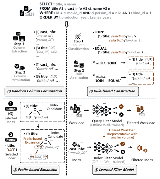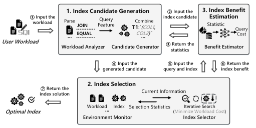 1. 索引候选生成:使用预定义策略合成有潜力的索引候选。