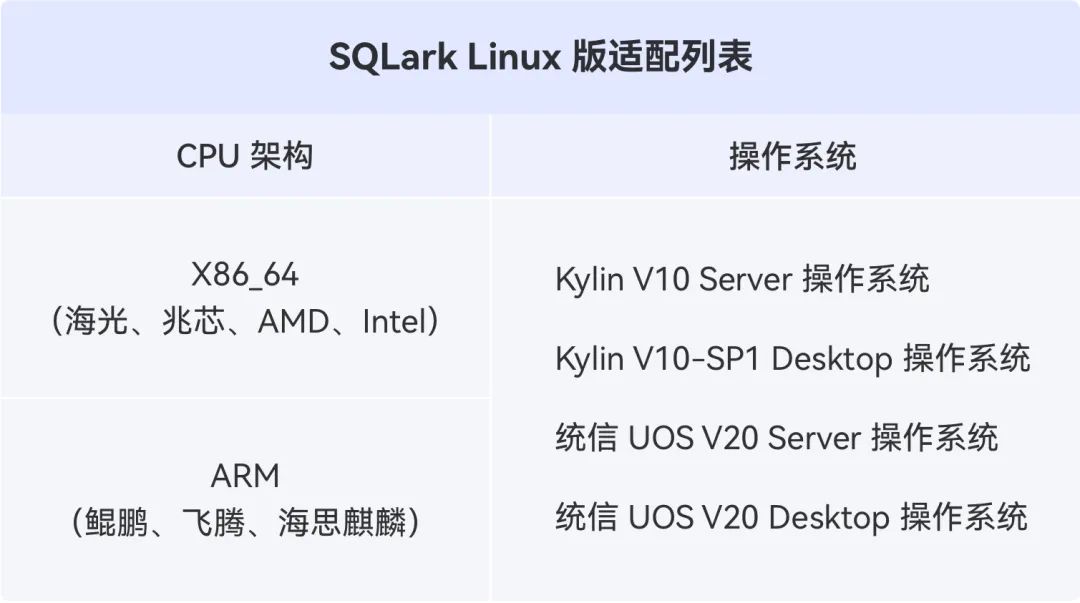 SQLark V3.5 发布 Linux ARM 架构版本。目前 SQLark Linux 版已完成对主流 X86 和 ARM 架构、Kylin V10 和统信 UOS 的适配。