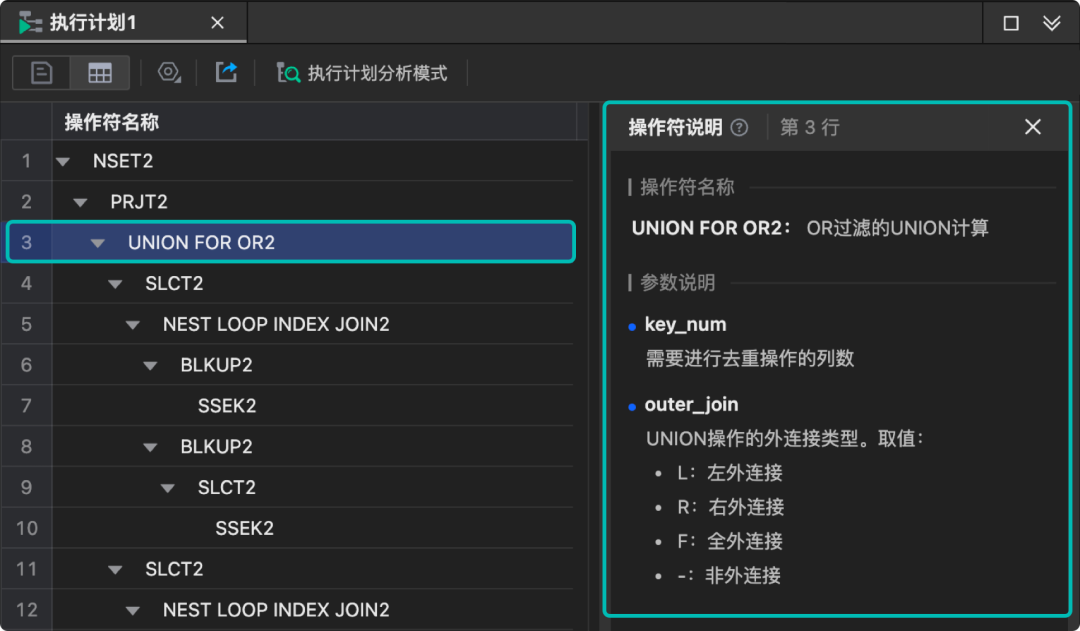 达梦数据库执行计划新增操作符说明(操作符含义、参数说明),用户无须对照文档即可快速理解执行计划内容。