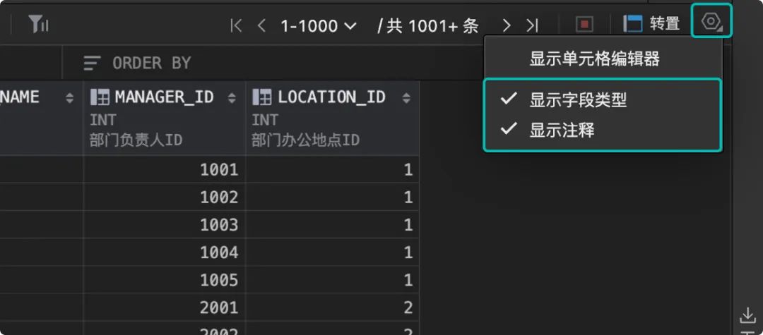 在数据展示方面,新增视图/物化视图的数据浏览和操作功能;结果集/数据表的表头也应用户反馈,可配置展示字段类型和注释信息;结果集/数据浏览页面分页显示的最大数据行数由 500 增加为 1000 行;