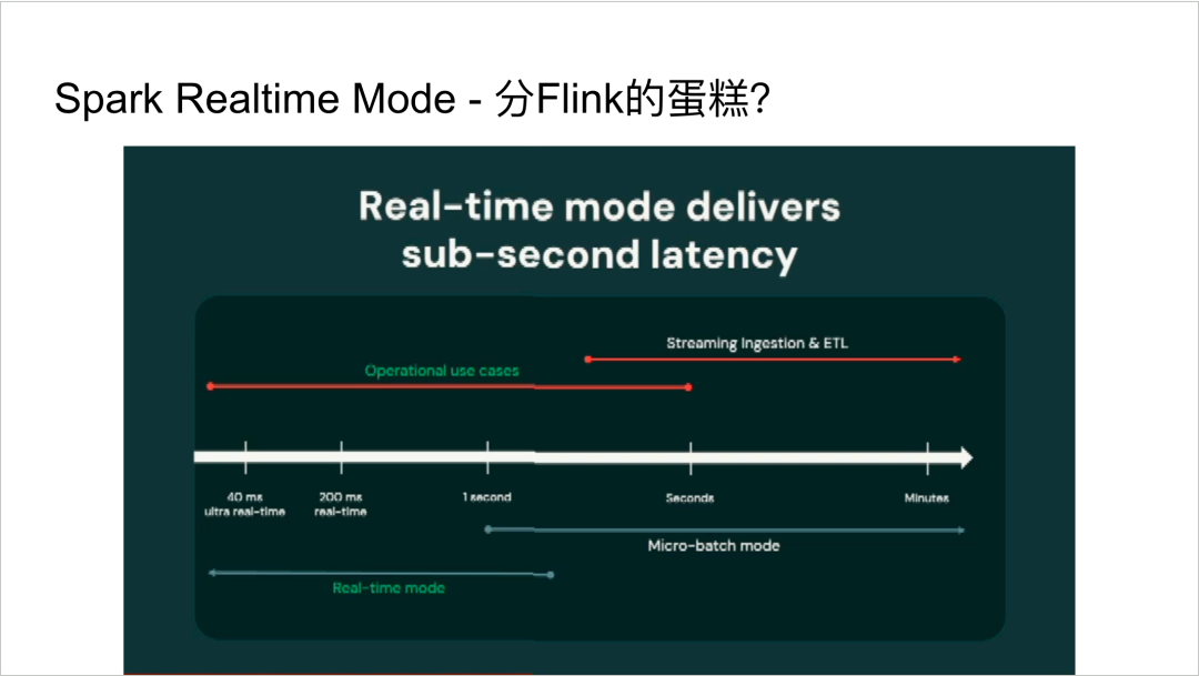 实时模式(Real-time Mode):Spark Structured Streaming传统上 采⽤微批处理(micro-batch)模式,与Flink等流处理引擎相⽐在延迟⽅⾯略显逊⾊。新的实时模式并⾮替代现有模式,⽽是在微批处理基础上,通过引入新的concurrent stage scheduler和non-blocking shuffle来提⾼实时性。这有望帮助⽤户整合流处理集群,降低运营成本。