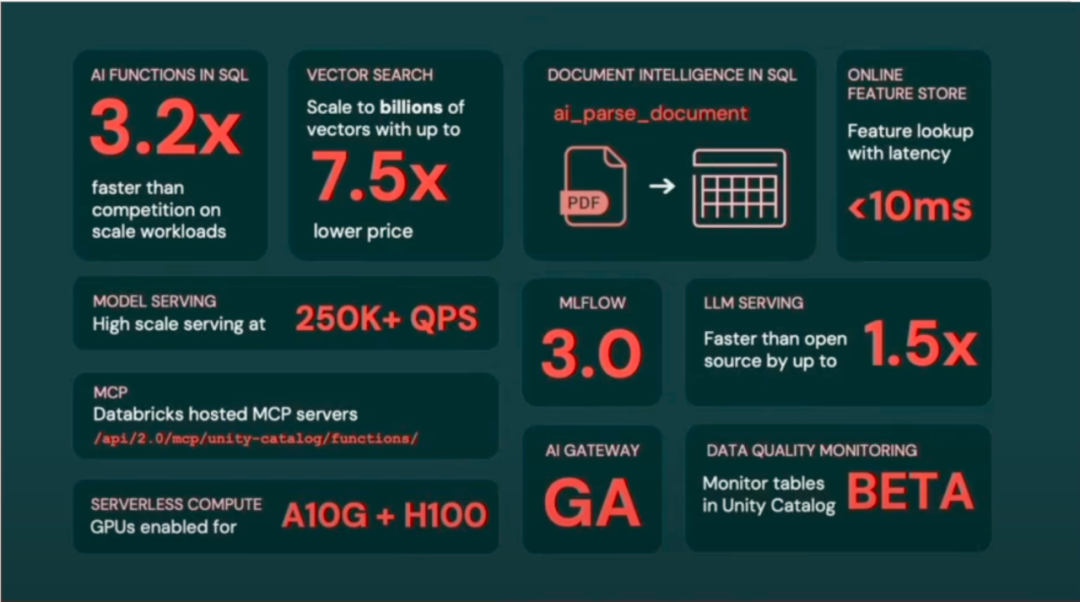 重要发布:AgentBricks正式发布、Lakeflow达到GA状态、Databricks Apps全面可用,以及10+重要功能更新,包括新产品、重大升级和预览版功能。