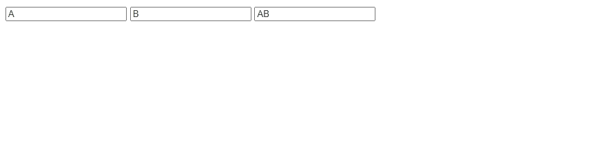 <!DOCTYPE html><html><head><meta charset="utf-8"><title></title></head><body><div id="app"><input type="text" v-model="firstName" /><input type="text" v-model="lastName" /><input type="text" v-model="fullName" /></div></body><script src="https://cdn.jsdelivr.net/npm/vue/dist/vue.js"></script><script type="text/javascript">const app = new Vue({el: "#app",data: {firstName: "A",lastName: "B"},computed: {fullName() {return this.firstName + " " + this.lastName;}}})</script></html>