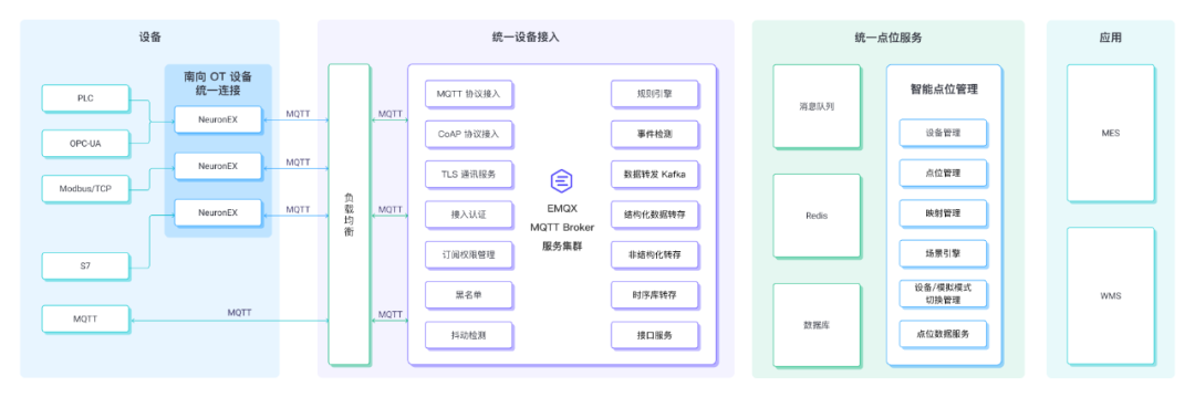 作为 AGV 与智能仓储领域的领先企业,该公司在为客户提供智能制造设备的同时,也配套提供一体化的 MES 管理系统。随着业务的发展,系统需要集成和协调控制越来越多的自动化设备,包括 AGV、机械臂、立体仓库等。这些设备采用的 OPC UA、Modbus TCP、S7、MQTT 等多种异构通信协议给系统集成带来了显著挑战。