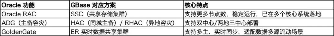 GBase 8s拥有一套完备的高可用方案,其中SSC(共享存储集群)对标Oracle RAC;HAC/RHAC对标ADG;ER集群对标GoldenGate。不同的是,GBase 8s的高可用方案基于内核级自研,不依赖第三方组件或操作系统补锅,自己搞定一致性、恢复、灾备。