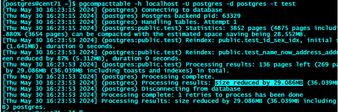 pgcompacttable -h localhost -U postgres -d postgres -t test