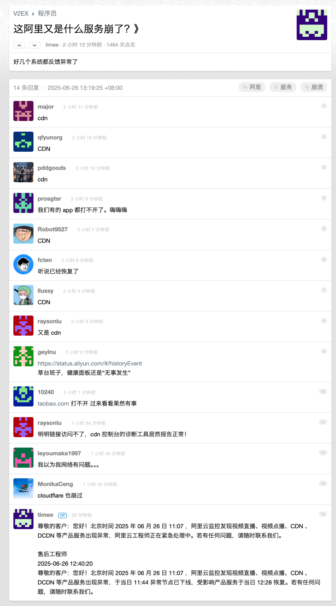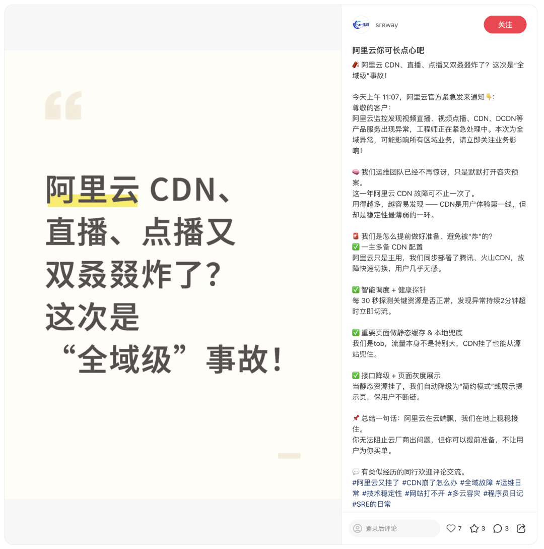 这次事故也在各种微信群,V2EX,甚至是小红书上流传讨论。