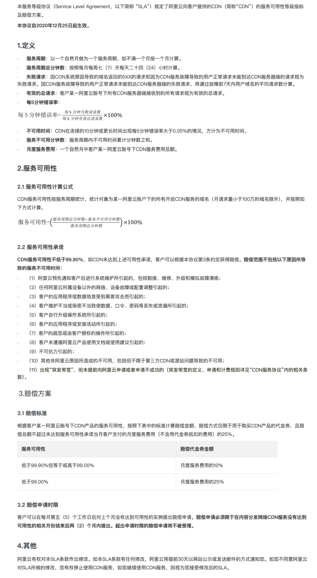根据阿里云 CDN SLA https://help.aliyun.com/zh/cdn/support/alibaba-cloud-cdn-sla 页面的说明,本次故障持续时间 81 分钟,占月度总时长 43200 的 0.18% ,也就是当月 CDN 可用性为 99.8125% ,达到 SLA 的第一档赔付额度,应当补偿月度服务费用的 10% 。