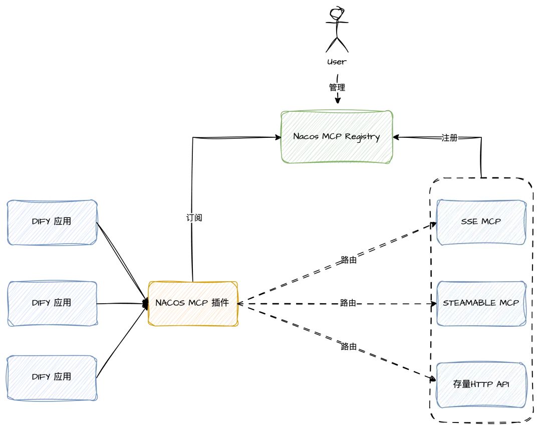 接入琐碎繁杂:每个需要接入 MCP 服务的 Dify应用都要单独配置 MCP Server 服务的连接信息,缺乏一个统一的集中式管理的平台。 难以动态变更:需要添加新的 MCP Server 或者修改 MCP Server 信息时,都要重新编辑和部署Dify应用,变更成本高。