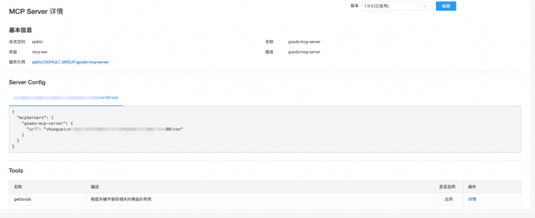 注册完成后,我们可以在Nacos 控制台上看到对应的MCP Server信息: