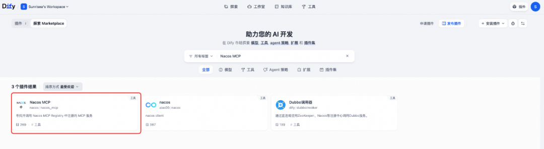 为了从 Nacos 中读取 Prompt 动态配置,我们需要在 Dify 中安装 Nacos 插件,并配置插件的连接信息: