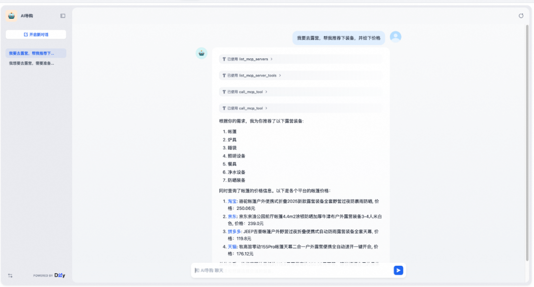 可以发现,在给出推荐的商品列表之外,AI 导购进一步的利用了price-mcp-server