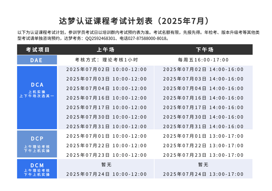 以下是2025年7月的认证课程开班计划: