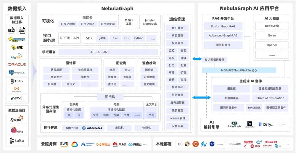 开源:NebulaGraph 遵循 Apache 2.0 协议开源,我们可以基于特定需求进行定制开发。 大规模性能:擅长处理千亿节点万亿条边的超大数据集,同时保持毫秒级查询延时。 分布式架构:NebulaGraph 的分布式特性使我们能够有效地跨多台服务器管理和查询大型数据集。 细粒度模式支持:NebulaGraph 提供灵活的模式管理,允许我们定义节点和边上适合我们知识图谱结构的特定属性。 专属查询语句:nGQL(NebulaGraph Query Language)是 NebulaGraph 为开发和运维人员设计的类 SQL 查询语言,支持灵活高效的图模式,它易于学习且功能强大,使我们能够快速查询实体之间的关系。