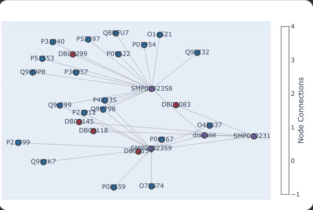 能展示实体间复杂关系(药物-靶点-疾病网络)