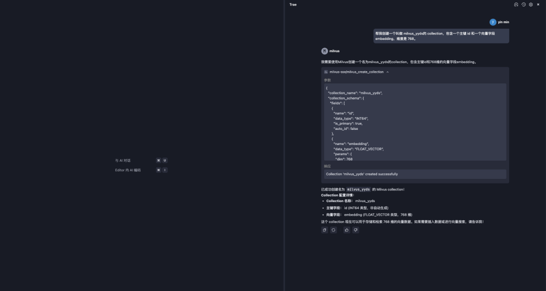 过去,很多朋友都有提到,Milvus足够专业,但对一些初学者来说,上手会稍有门槛,那么这份TRAE+Milvus MCP请收好,让你用自然语言直接开启Milvus速通。