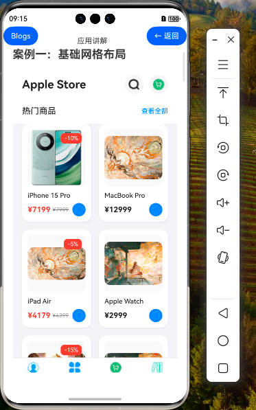 在本案例中,我们将使用Grid和GridItem组件创建一个电商应用的商品列表页面,展示Apple Store的产品。