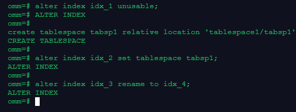2.设置索引1不可用,修改索引2的表空间,重命名索引3