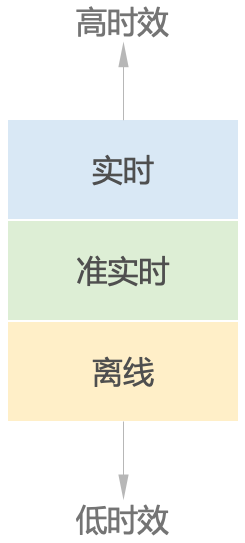 要甄别和梳理常见的业务场景,我们可以先按照时效性区分业务场景,可以分为实时、准实时、离线。实时通常是秒级甚至毫秒级;准实时一般是分钟级;离线通常以天为单位。