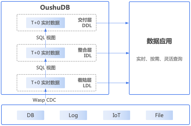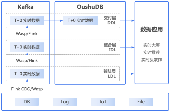 数据分层可以通过Flink或者偶数Wasp实现。在偶数的实时湖仓建设方法中,数据层可分为着陆层(Landing Data Layer)、整合层(Integration Data Layer)、交付层(Delivery Data Layer)三层。