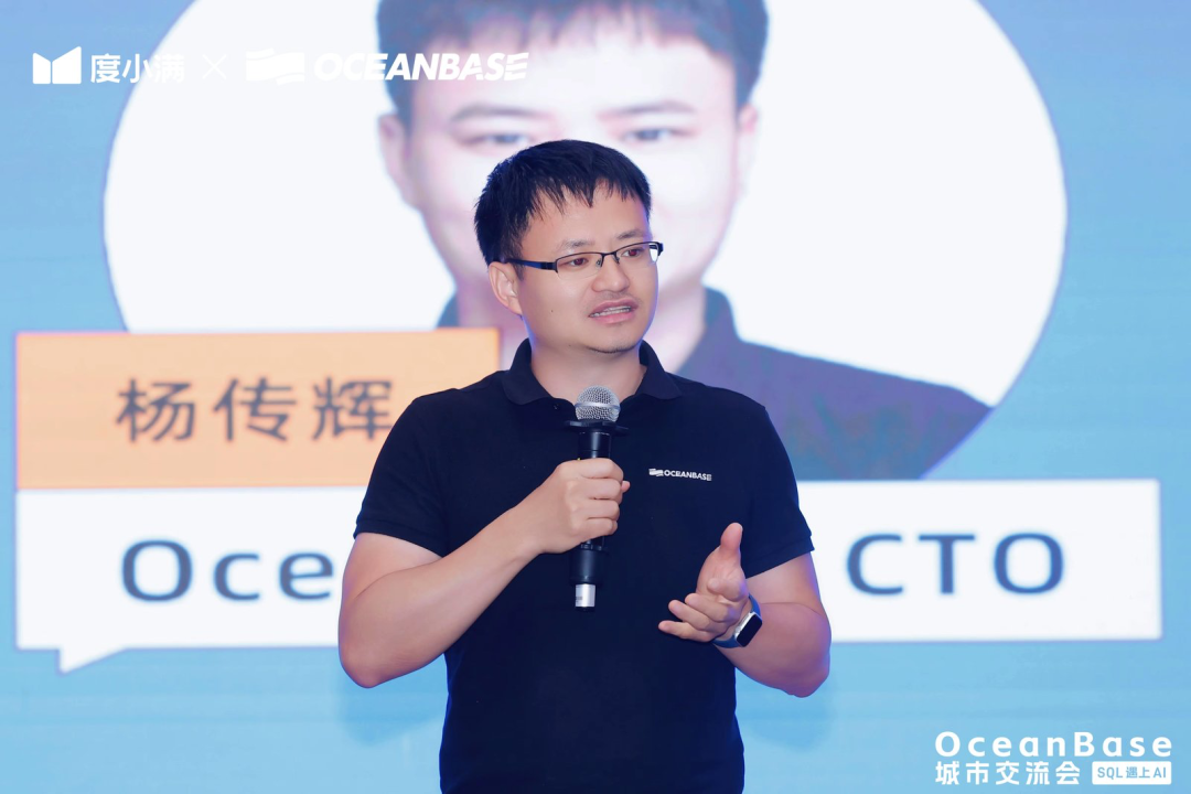 OceanBase CTO 杨传辉在致辞中首先对度小满联合举办本次技术活动表示诚挚感谢。接下来在回顾行业发展历程时,杨传辉分享了行业最新进展:“数据库技术正迈入 AI 驱动的新纪元”。基于蚂蚁集团 15 年分布式数据库技术积淀,OceanBase 已构建起三大核心优势: