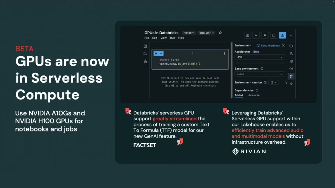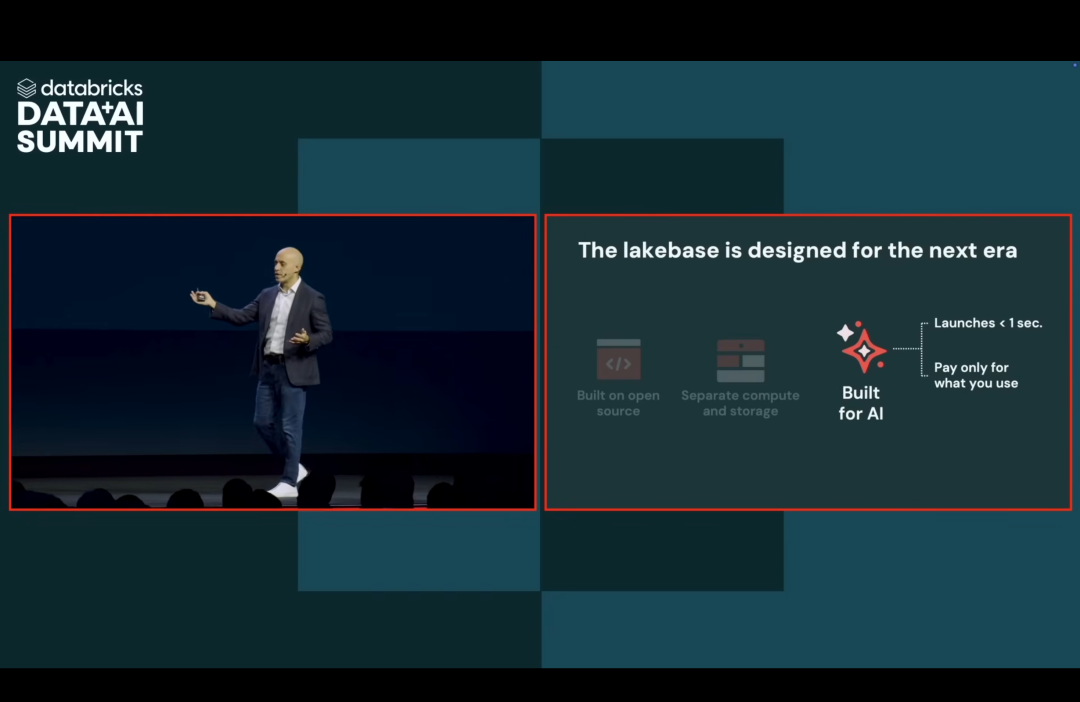 3、发布 lakebase,通过收购 NEON,将 NEON 的 PG 数据库能力也纳入整个平台。主打的能力是 存算分离 和 branch 功能。这两个功能特别适合Agent 使用。(可能代表了数据库在 AI 应用里面的一个关键能力)