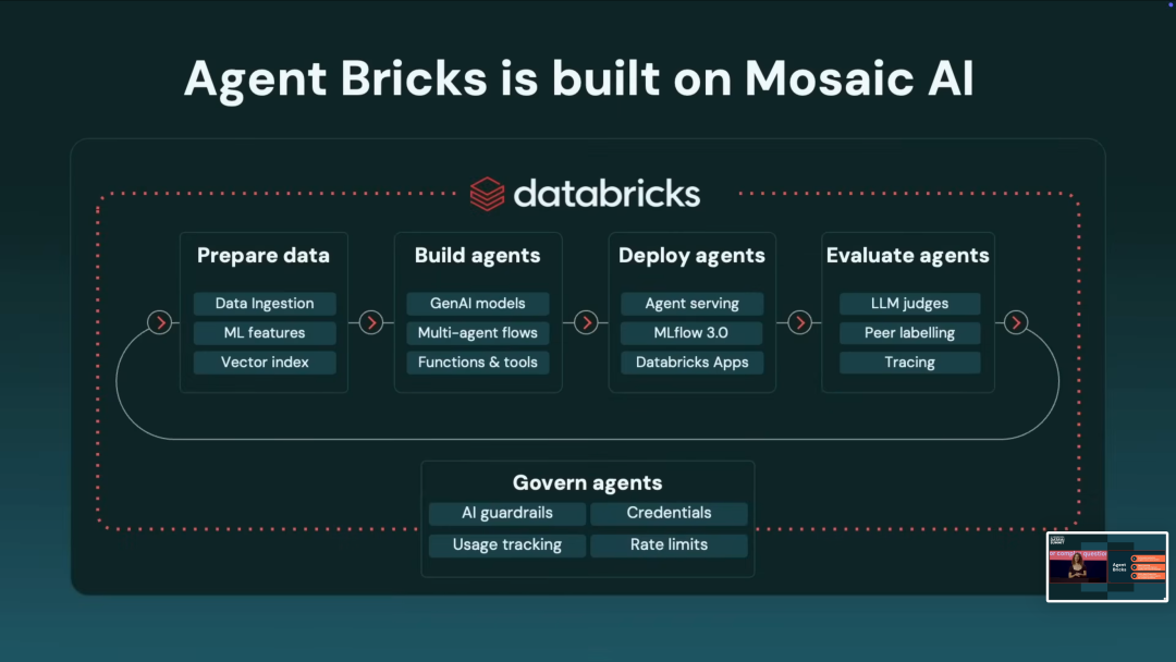 5.1、agent bricks 是构建在去年收购的 mosaic AI 上面。