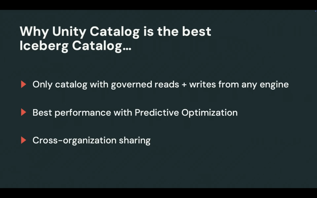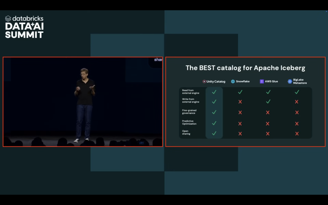 9、发布iceberg managed tables,功能全,宣传是最好的 catalog,(Databricks收购了 iceberg 背后的公司, 对标 snowflake 意味非常明显)
