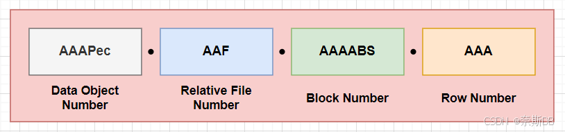 OOOOOO:数据对象编号标识该段(在示例中为 AAAPec)。数据对象编号被分配给每个数据库段。同一段中的模式对象(如表簇)具有相同的数据对象编号。 FFF:与表空间相关的数据文件号标识包含该行的数据文件(在示例中为 AAF)。 BBBBBB:数据块编号标识包含该行的块(在示例中为 AAAABS)。块号与它们的数据文件相关,而不是与它们的表空间相关。因此,具有相同块号的两行可能位于同一表空间的不同数据文件中。 RRR:行号标识块中的行(在示例中为 AAA)。