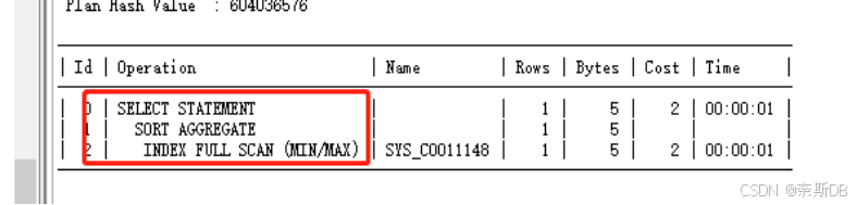 |Id| Operation | Name |Rows|Bytes|Cost(%CPU)|Time|