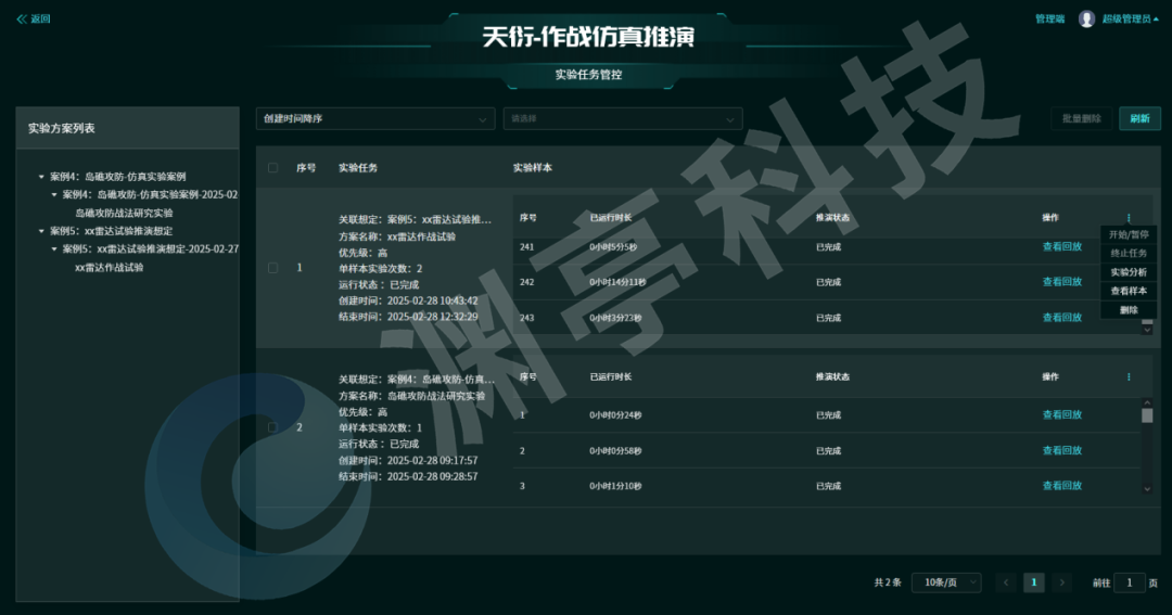 平台还提供对实验任务的细粒度控制,可对任意实验推演任务执行暂停、续推、终止等操作,确保实验进程的全程可控、可干预。
