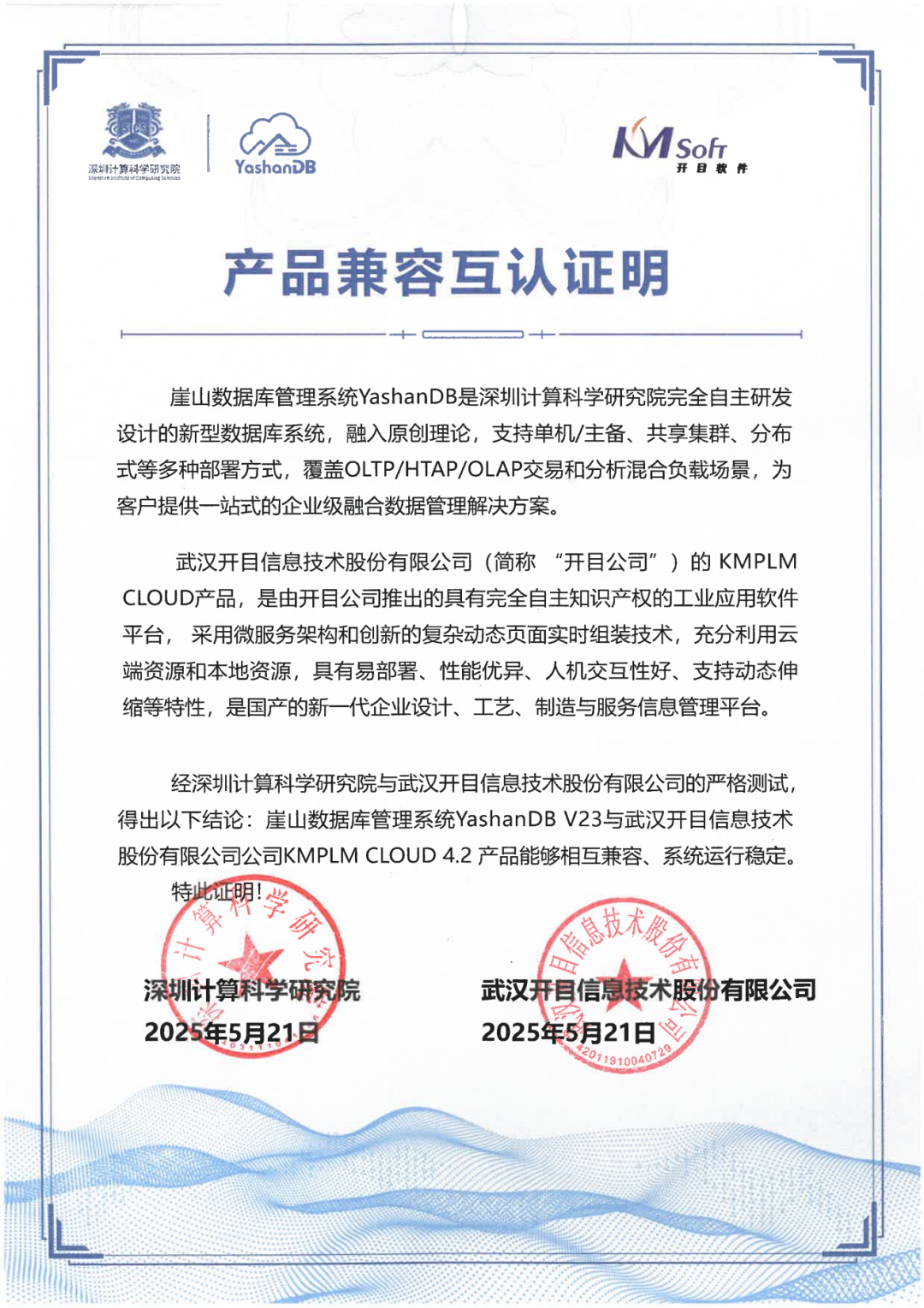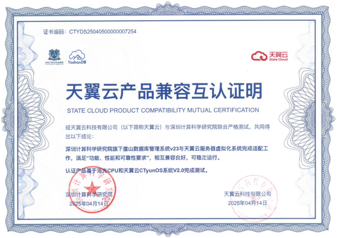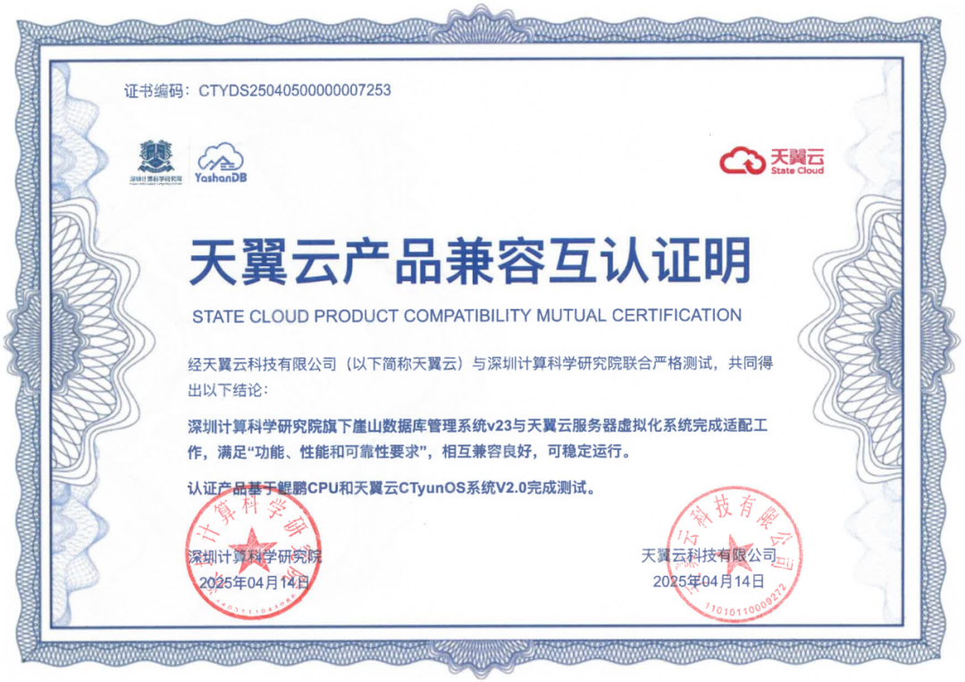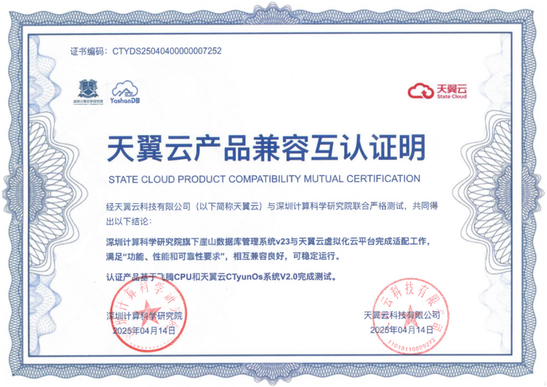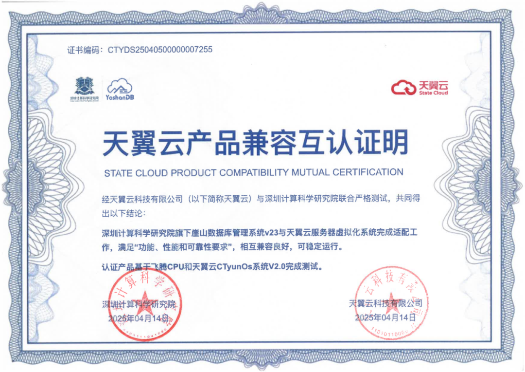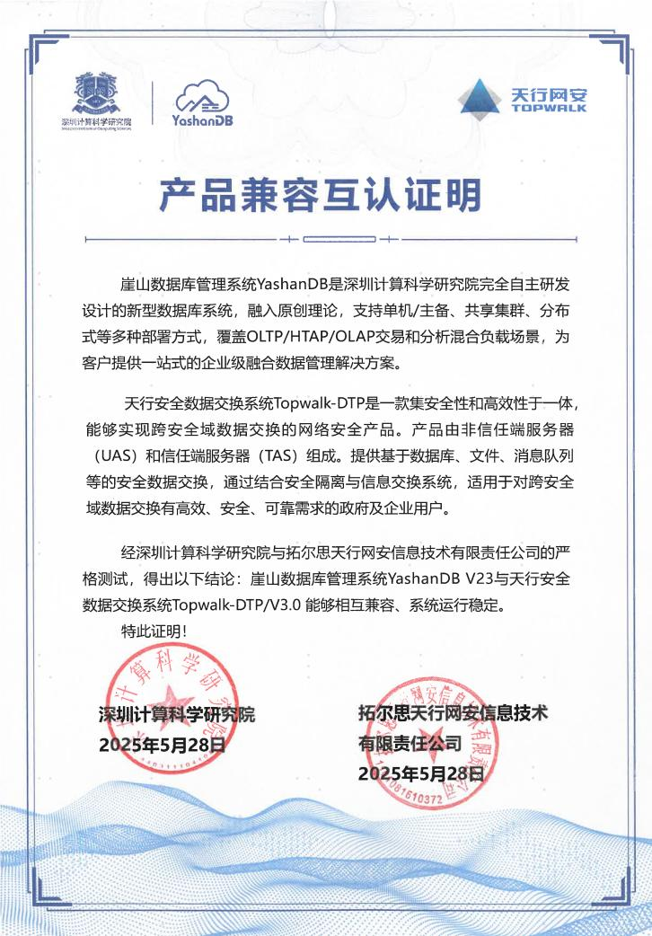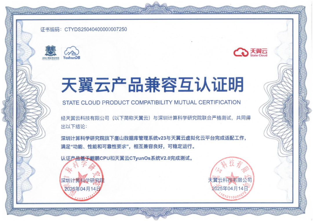 近期,深圳计算科学研究院崖山数据库管理系统YashanDB与开目公司、天喻软件、拓尔思天行网安、永兴元科技、天翼云科技、锐钲科技、九桥同步等十余家ISV厂商的多个产品完成兼容互认证。