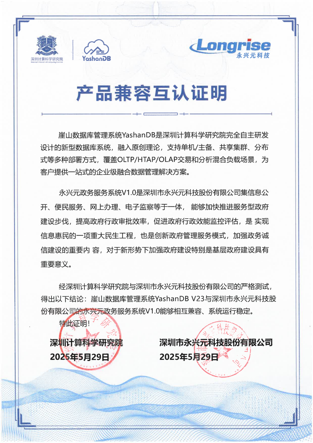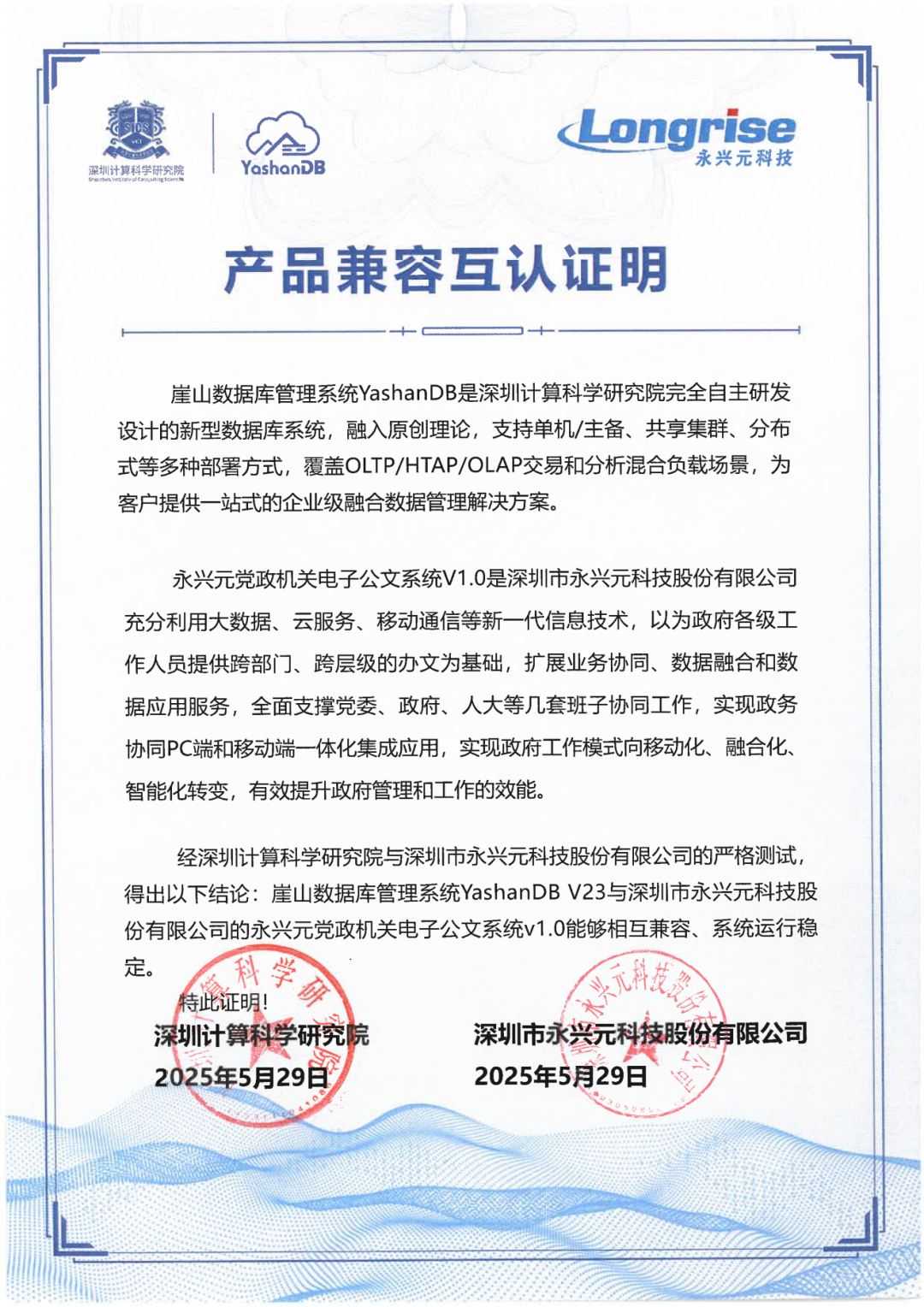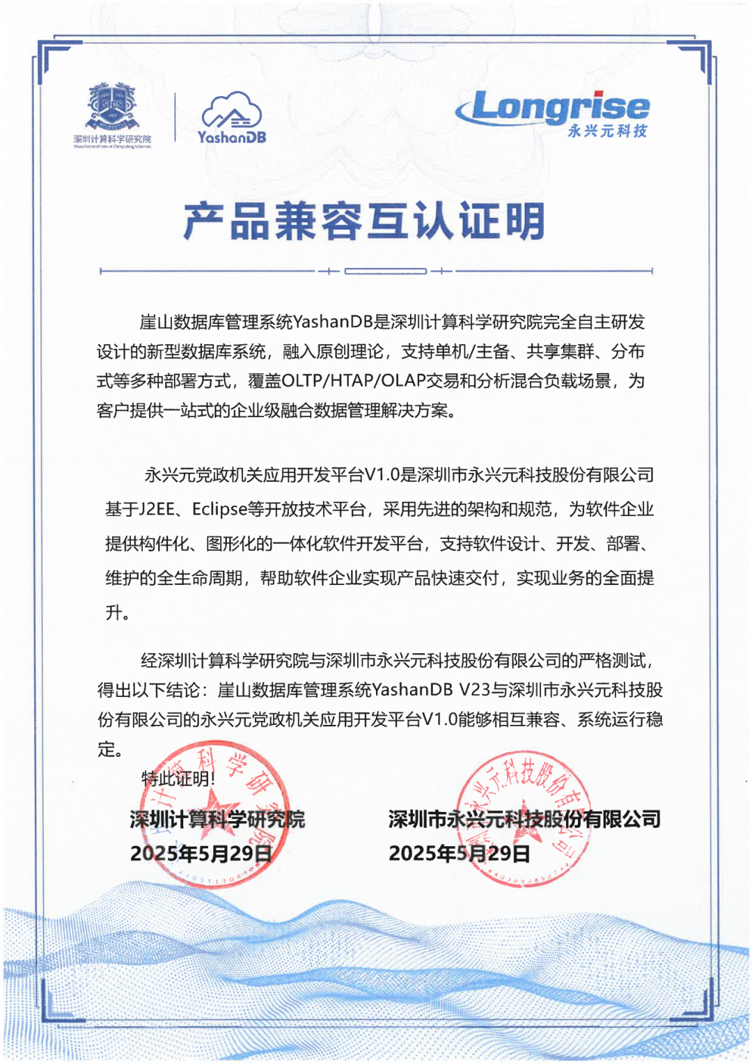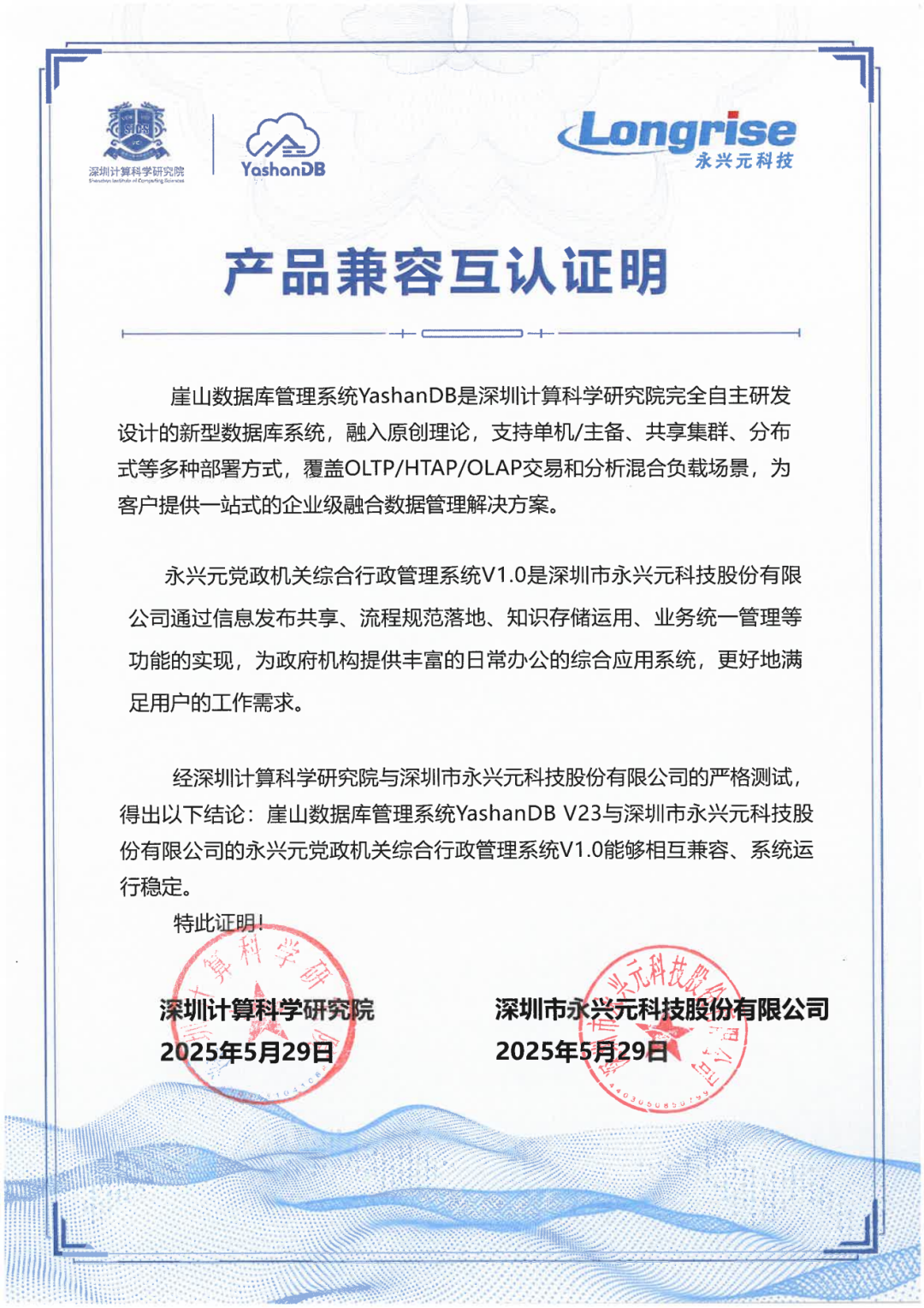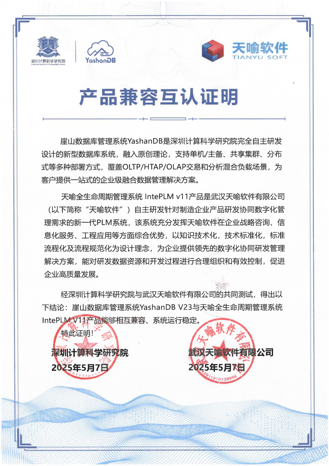 近期,深圳计算科学研究院崖山数据库管理系统YashanDB与开目公司、天喻软件、拓尔思天行网安、永兴元科技、天翼云科技、锐钲科技、九桥同步等十余家ISV厂商的多个产品完成兼容互认证。